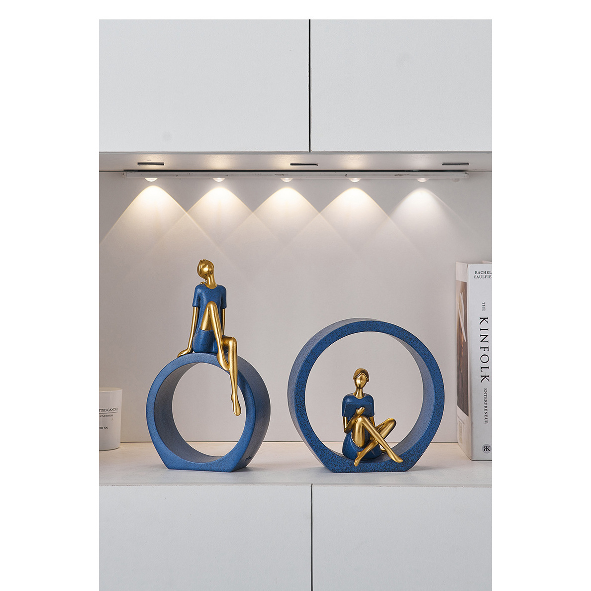 1\u002F2pcs Resin Elegant Nordic Modern Girl Figurine - White & Golden Dancer Statue, Minimalist Female Sculpture for \u002FOutdoor, Shelf, TV Cabinet, Desk - Scandinavian Style Ornament (Half-Figure)